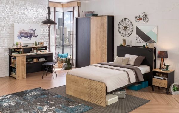 Serija mladinske sobe Black je, kot že ime pove, na voljo v črni barvi. Za poživitev ima dodatke v barvi lesa. Elegentno moderna soba je tako primerna za deklice in dečke.