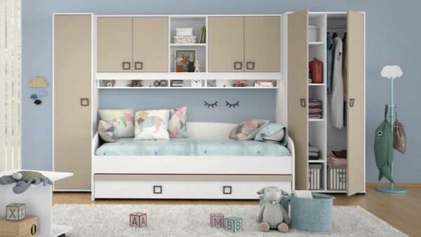 Obstajajo tipske (navadno cenejše) otroške sobe in tiste, ki jih lahko prilagajamo po meri. Pri nas proizvajalca Compactos lahko popolnoma prilagodimo vašemu prostoru in z inovativnimi rešitvami poskrbimo, da se bo otrok v njej počutil odlično.