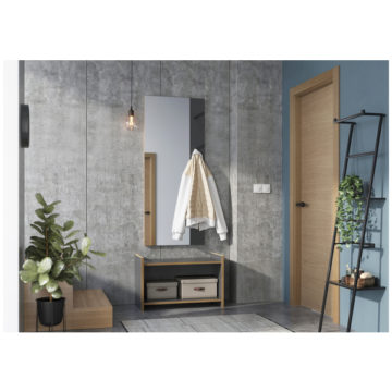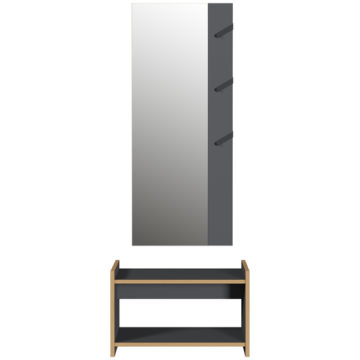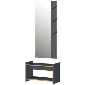 Predsoblje se sastoji od ormarića/klupe za cipele i velikog ogledala. Na ogledalo su dodane i vješalice za kapute i drugu odjeću. Ispod klupe je mjesto za odlaganje cipela ili drugih stvari. Zaštićen je sa melaminom koji je otporan na prašinu i ogrebotine i ima ABS robni trak.