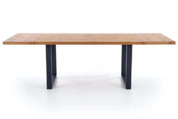 Blagovaonski stol Perez očarat će vas ne samo visokokvalitetnim materijalima, već i funkcijom proširenja. Izrađena je od furnirane ploče u kombinaciji s masivnim drvom po rubovima. Baza je plastificirana i izrađena od čelika.