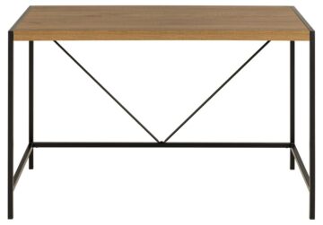 - Materijali: Površina u mat grubom melaminu u rustikalnom hrastu, okvir i baza u mat crnom čeliku obloženom prahom.