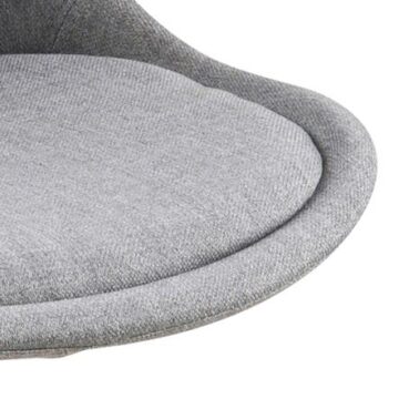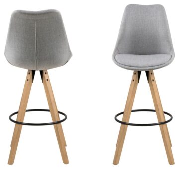 Barska stolica Dima kombinira moderan i minimalistički dizajn s funkcionalnošću i udobnošću. Presvučena je mekom tkaninom Korzika svijetlo sive boje (40), koja u kombinaciji s organskim oblikom sjedišta osigurava udobno sjedenje i pomaže u održavanju dobre posture. Stolica je opremljena čvrstim postoljem u obliku 4 zvjezdice, izrađenim od kaučukovog drveta, lakiranog NC lakom, što osigurava izuzetnu stabilnost i izdržljivost. Patent zatvarač na tapecirungu omogućuje jednostavno održavanje i dodatnu funkcionalnost.
