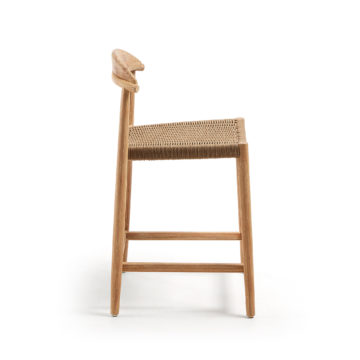 Drvena barska stolica Glyni odličan je izbor za ljubitelje retro stila i kvalitetne izrade. Izrađena je od masivnog drva eukaliptusa i pletenog užeta. Dobavljiva je u dvije visine.