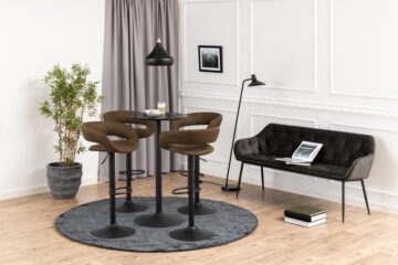 Barska stolica Grace osmišljena je s naglaskom na udobnost i funkcionalnost te kombinira moderni dizajn s ekskluzivnim pravima na oblikovanje. Oblazinjena je u tkaninu Preston svijetlosmeđe boje (22), što joj daje profinjen i elegantan izgled. Stolica ima plinsko dizalo koje omogućuje jednostavno podešavanje visine sjedala, a funkcija okretanja povećava prilagodljivost i udobnost. Noga u obliku trube od grubo prašno lakiranog crnog čelika osigurava stabilnost, dok oslonac za noge omogućuje opušteno sjedenje.