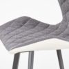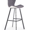 Metalna barska stolica H83 ima sjedalo presvučeno mekanom sivom tkaninom, a naslon je izrađen od EKO kože u bijeloj boji.