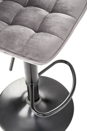 Metalna barska stolica H95 ima noge od metala obloženog prahom u crnoj boji. Sjedalo i naslon izrađeni su od baršunaste tkanine i dostupni su u tri boje: