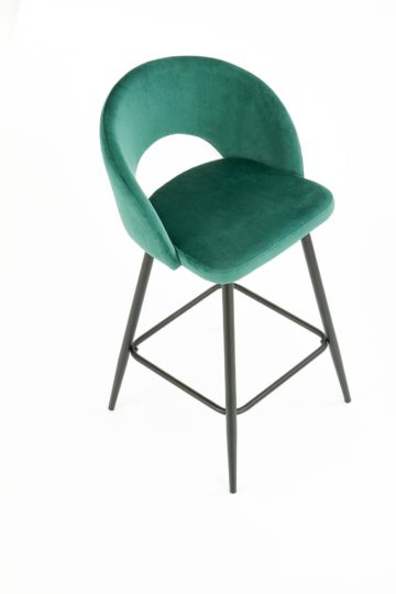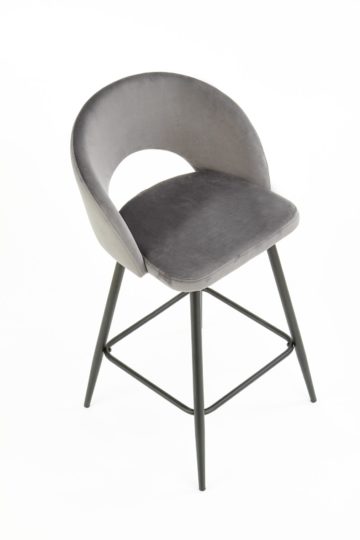 Metalna barska stolica H96 ima noge izrađene od metala plastificiranog u crnoj boji. Sjedalo i naslon izrađeni su od baršunaste tkanine i dostupni su u tri boje: