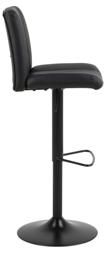 Barska stolica Sylvia idealna je za sve koji cijene eleganciju i funkcionalnost u svojoj kuhinji ili kućnom baru. Presvučena crnom umjetnom kožom (PU DM23) s vertikalnim šavovima, stolica odiše profinjenošću i klasičnom estetikom. Sjedalo u obliku slova L osigurava optimalnu udobnost, dok robusno crno postolje od prašno lakiranog čelika nudi stabilnost i dug vijek trajanja. Ugrađeni oslonac za noge, plinski podizač za podešavanje visine te rotirajuća funkcija doprinose većoj prilagodljivosti i udobnosti tijekom korištenja.