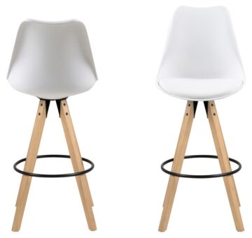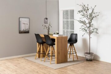 Barska stolica Dima spaja moderan i minimalistički dizajn s izvanrednom funkcionalnošću. Njezina forma je osmišljena za dodatnu udobnost, uključujući pričvršćeni jastuk koji osigurava ugodno sjedenje. Čvrsta konstrukcija nogu od kaučukovog drva, lakiranog NC lakom, pruža izvanrednu stabilnost, dok moderna i minimalistička organska forma sjedala nudi stabilno i udobno iskustvo.