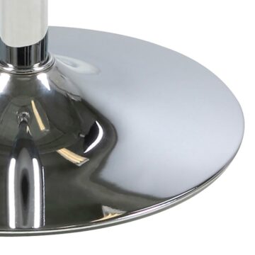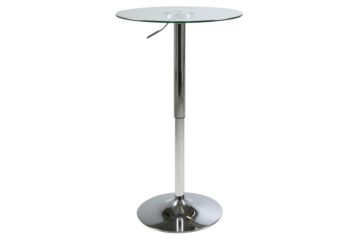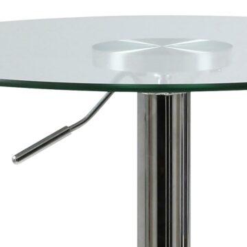 Barski stol Nido ima kromirano podnožje i staklenu površinu. Stol uključuje plinski mehanizam za dizanje i spuštanje s kojim možete prilagođavati visinu između 83 i 104 cm. Debljina staklene površine je 8 mm.