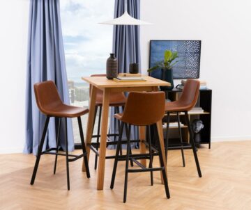 Barska stolica I_Oregon spaja moderan dizajn s retro estetikom, što je čini savršenim izborom za vašu kuhinju ili bar. Stolica je presvučena visokokvalitetnom PU kožom u retro brandy boji (691B), koja se odlično slaže s mat crnim postoljem od grubo prašno lakiranog čelika. Stolica je ukrašena kremnim cik-cak šavovima, koji dodaju vizualnu zanimljivost i naglašavaju vintage izgled. Čvrsto čelično postolje s osloncem za noge osigurava stabilnost i udobnost, omogućujući opušteno sjedenje tijekom brzog obroka ili kave.