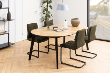 Tkanina Prostoren od koje je sjedalo blagovaonske stolice Zola omogućuje vam slobodno kretanje tijekom sjedenja, dok kraći naslon savršeno upotpunjuje proporcije stolice. Za osiguranje udobnosti, sjedalo je tapecirano mekanom tkaninom na dodir. Izgled stolice nadopunjuje ne tako uobičajena ljuljajuća metalna baza, koja dizajnu daje futuristički prizvuk. Ljuljajuća baza i horizontalni šavovi dodaju vizualnu zanimljivost. Izrađena od vatrootpornih materijala.