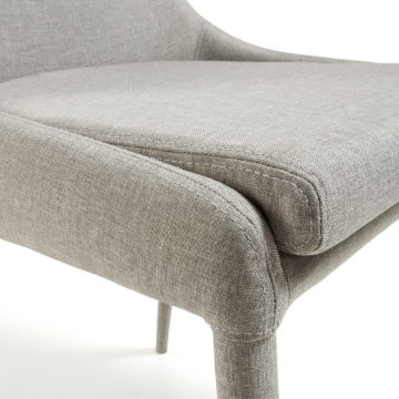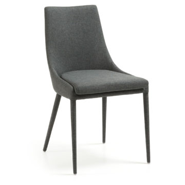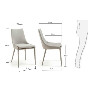 Blagovaonska stolica Dant je klasičnog izgleda i kvalitetne izrade. Sjedalo i naslon su podstavljeni, a nogice su metalne i obučene u istu tkaninu kao sjedalo i naslon. Stolica je dostupna u tamno sivoj i svijetlo sivoj boji.