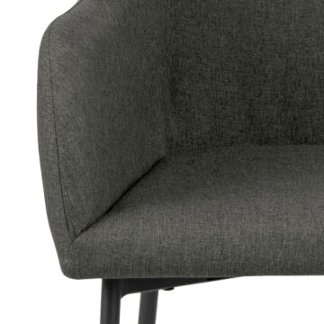Iznimno udobna Metalna blagovaonska stolica June zadovoljit će i one najzahtjevnije. Sa svojim jednostavnim dizajnom uklapat će se posvuda. Metalna blagovaonska stolica sastoji se iz sjedišta obučenog u visokokvalitetnu tkaninu Sitka obojanu u sivu boju. Postolje je metalno i prašno obojano u crnu boju.
