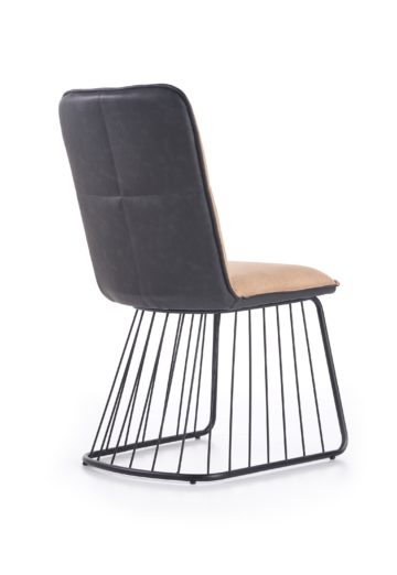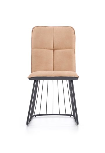 Blagovaonska stolica K/269 JE unikatnog izgleda, Sjedište je izrađeno od bež mikrotkanine a noge su metal mat crne.