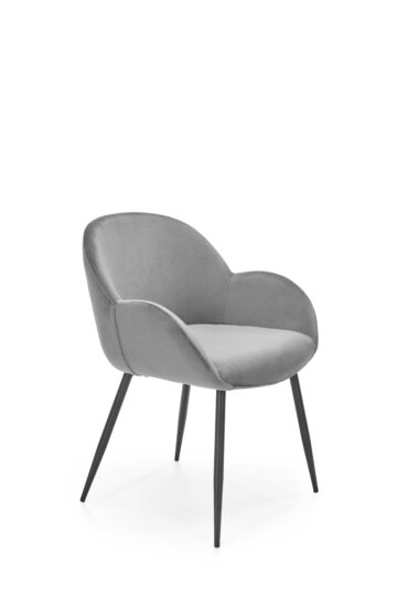 Suvremeni stil blagovaonske stolice K480 uočiv je u modernom obliku i elegantnoj baršunastoj tkanini. Ima tapecirano sjedište i vitko oblikovano postolje od praškasto lakiranog čelika.