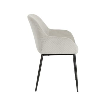 Konna je suvremena stolica elegantnog i udobnog dizajna. Izrađena je od metalnih nogu i tapeciranog okvira od iverne ploče. Pamučna tkanina u obliku rebrastog baršuna dobavljiva je u žutoj i sivoj boji.