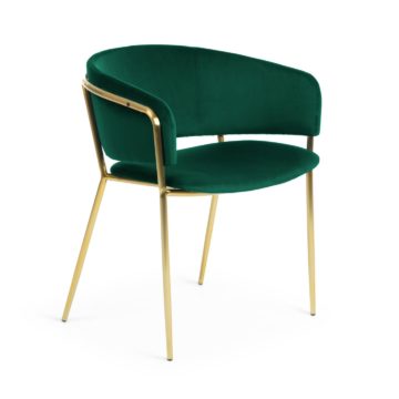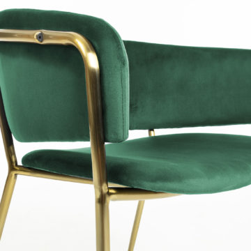 Konnie je višenamjenska dizajnerska stolica, koja če suvremenim i vinage izgledom estetsko dopunit brojne zasjede namještaja. Udobna stolica ima tapecirano sjedište i naslon, koji su obućeni u tkaninu od baršuna.