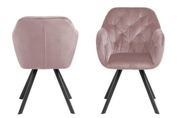 Atraktivna blagovaonska stolica-ležaljka Lola s sjedalom obloženim kvalitetnom baršunastom tkaninom, predstavlja spoj elegancije i profinjenosti. Metalna baza, praškasto obojena u crnu boju, proizlazi iz središta sjedala koje krase dekorativni šavovi u retro stilu. Tkanina stolice Vic rose 18 je mekana na dodir.