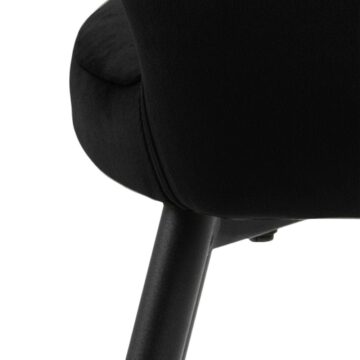 Blagovaonska stolica Ranja u baršunastoj crnoj tkanini za izuzetno udobno sjedenje. Dodatnu udobnost osigurava tapecirano sjedalo s naslonima za ruke.