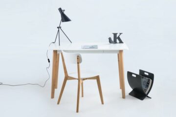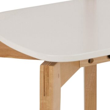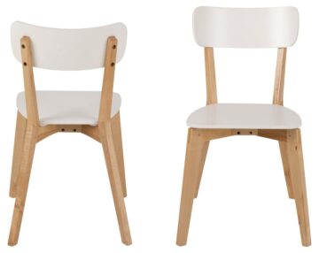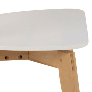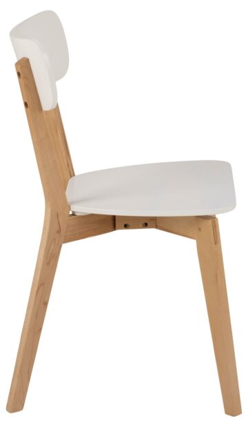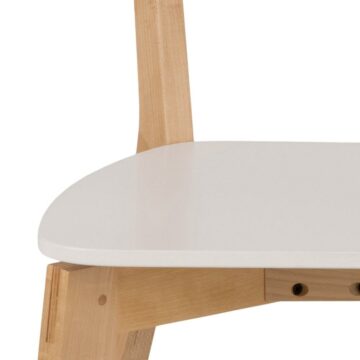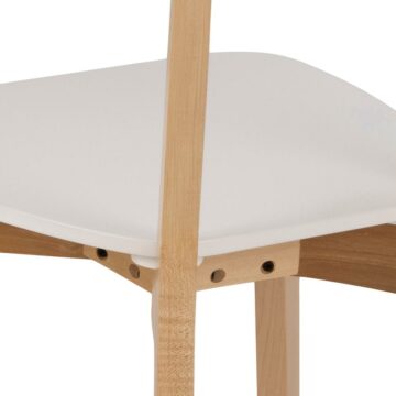 Drvena stolica za blagovaonu Raven ima sjedalo i naslon od lakiranog medijapana u bijeloj boji, a okvir stolice je napravljen od brezinog drva u prirodnoj ili crnoj boji.