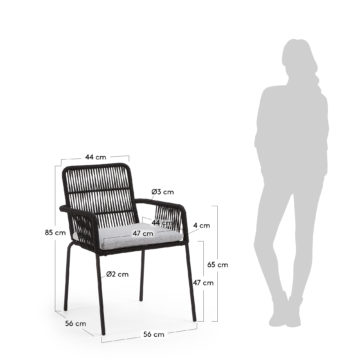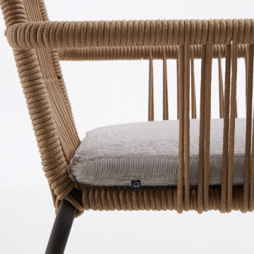 Samt je višenamjenska stolica, primjerna i za vanjsku uporabu. Udobna stolica s naslonom za ruke i leđa napravljena je od UV stabilnog poliesterskog užeta i čelićnih nogu, prašno obojanih u crnu. Uže je dostupno u bež i crnoj boji.