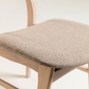 Drvena Blagovaonska stolica Selia je napravljena iz čvrstog drva i pokrivena s furnirjem. Sjedalo uključuje jastuk sa tkaninom. Vodo odporna je i lako se čisti. Jednostavan dizajn stolice prilagodi se svakom komadu namještaja. Noge imaju zaštitu za prepreku oštečenja same stolice i podloge.