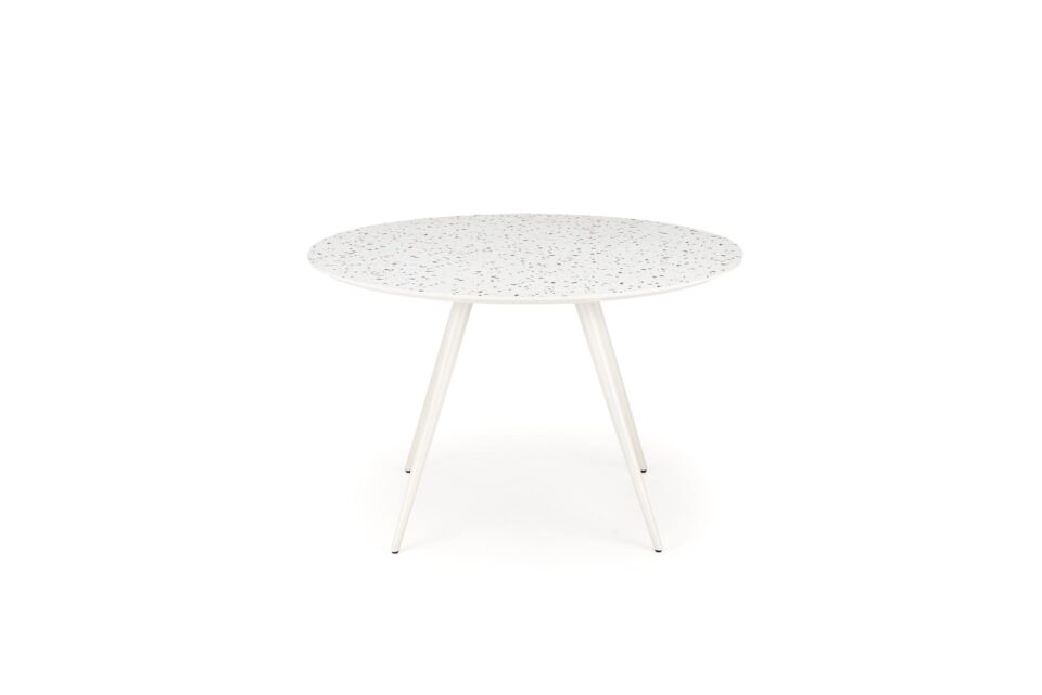 - Privlačan dizajn: Okrugli stol s elegantnom bijelom terazzo pločom i bijelim nogama.