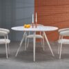 - Privlačan dizajn: Okrugli stol s elegantnom bijelom terazzo pločom i bijelim nogama.