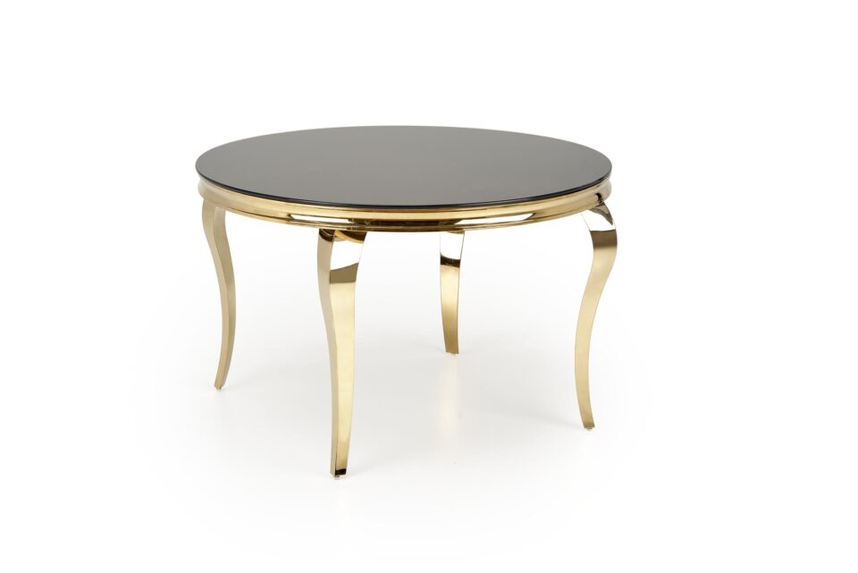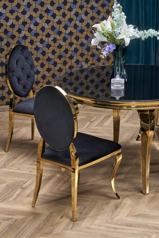 Blagovaonski okrugli stol Reginald 2 više je od samo komada namještaja; izvanredno je umjetničko djelo koje će u vaš dom unijeti dašak prestiža i bezvremenske elegancije. Njegova smjela kombinacija sjajnih zlatnih nogu i sofisticirane crne staklene ploče stvara središnju točku koja oduševljava i poziva na nezaboravna kulinarska iskustva.