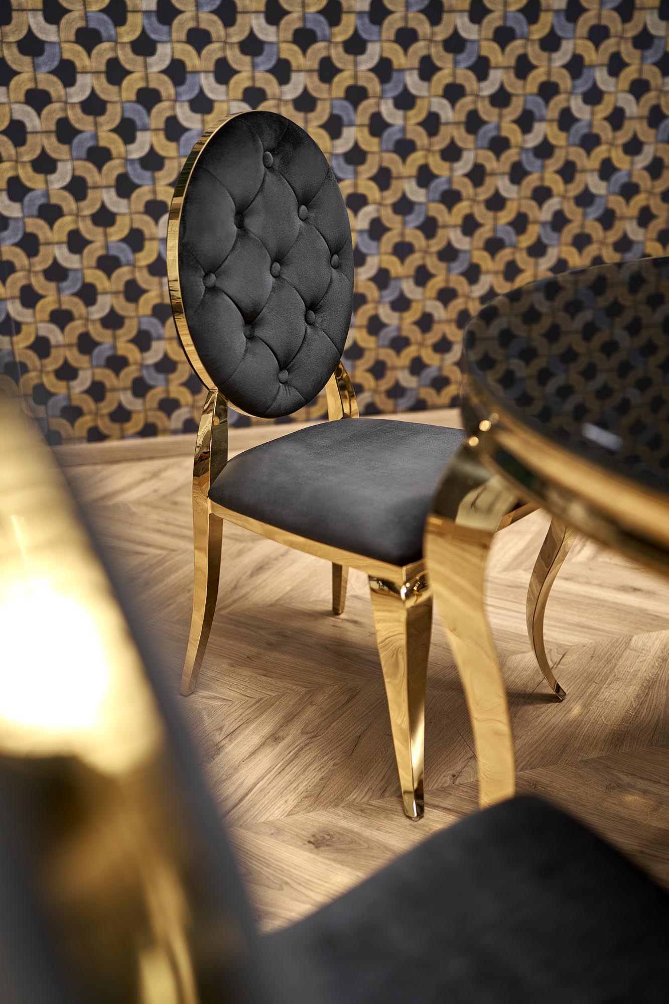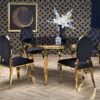 Blagovaonski okrugli stol Reginald 2 više je od samo komada namještaja; izvanredno je umjetničko djelo koje će u vaš dom unijeti dašak prestiža i bezvremenske elegancije. Njegova smjela kombinacija sjajnih zlatnih nogu i sofisticirane crne staklene ploče stvara središnju točku koja oduševljava i poziva na nezaboravna kulinarska iskustva.