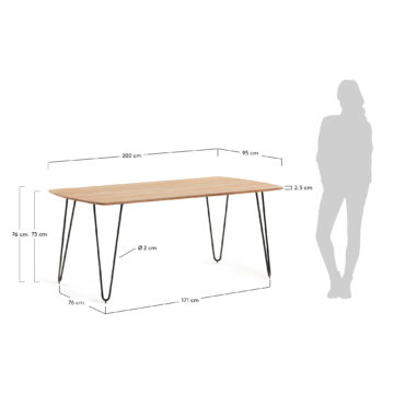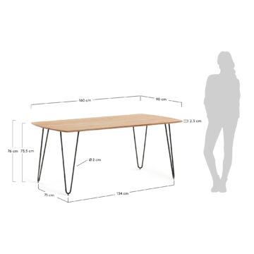 Barcli je elegantan i minimalistički blagovaonski stol, koji se odlikuje kvalitetnom izradom i prilagodljivim izgledom. Gornja ploča je napravljena od masivnog drva bagrema i odlično stoji metalne nogice V oblika. Stol je visok 76 cm i dostupan u dvije dimenzije, koje variraju u širini.