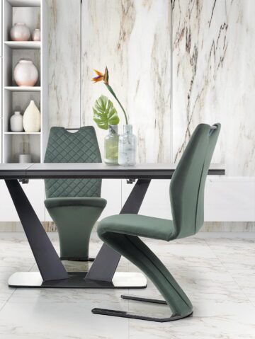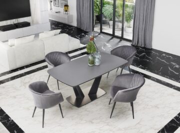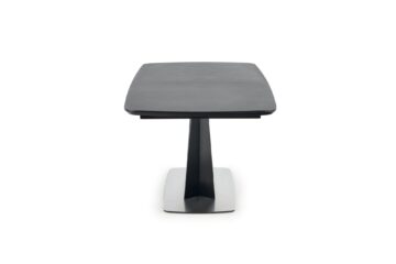 Snažan i kvalitetan blagovaonski stol koji zaista ima sve u jednom. FANGOR sadrži gornju ploču od stakla, dok je njegov okvir izrađen od visokokvalitetnog MDF-medijapana. Baza je izrađena od nehrđajućeg čelika i praškasto bojena crnom bojom. Osim svih značajki, stol je također proširiv i dostupan u dvije nijanse, tamno sivoj i crnoj.
