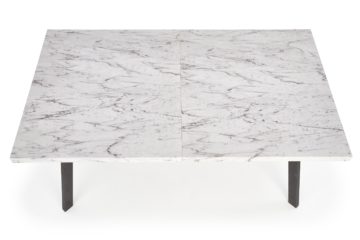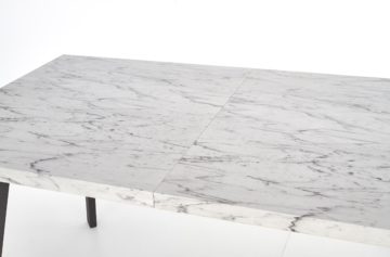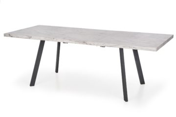 Blagovaonski stol Dallas ima ploču od medijapana obloženog melaminom u bijelo sivoj boji (izgled mramora). Čelična baza je crna. Stol je na razvlačenje. Uz stol možete kombinirati K279 ili K280 stolice.