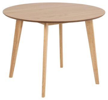 Blagovaonski stol Roxby natur: Jedilna miza Roxby s okruglim oblikom savršena je izbora za manje urbane prostore, jer pomaže stvoriti osjećaj prostranosti i ugodnu atmosferu. Okrugli oblik omogućuje da su svi gosti bliže jedni drugima, što doprinosi većoj povezanosti tijekom obroka. S prirodnim izgledom hrastovog furnira i kaučukovca, ova miza odlično se uklapa u različite palete boja, kako svijetlih tako i tamnih.