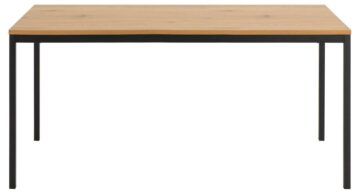 Potpuno jednostavan izgled koji će se perfektno uklapati u svaku blagovaonicu sa ponosom nosi blagovaonski stol Seaford. Upravo ta je izrađena iz visokokvalitetnog melamina obojanog u matiranu nijansu divljeg hrasta. Postolje je metalno i prašno obojano u crnu boju. Birati možete između dvije dimenzije.