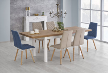 Ploča stola je izrađena od laminiranih MDF ploča, a noge od masivnog drveta bukve.
