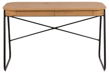 Blueton radni stol dizajniran je za udoban i kreativan prostor kod kuće, gdje možete izraziti svoju kreativnost. S izgledom divljeg hrasta, zaobljenim kutovima i crnim cjevastim čeličnim okvirom, ovaj stol donosi moderan i atraktivan dizajn. Dvije ladice osiguravaju sigurno pohranjivanje vaših bilježnica, olovaka i ostalih sitnica.