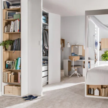 - Mogućnost nadogradnje: Knjižnoj polici je moguće dodati i toaletni stolić za četiri osobe, čime se stvara funkcionalni radni kutak.