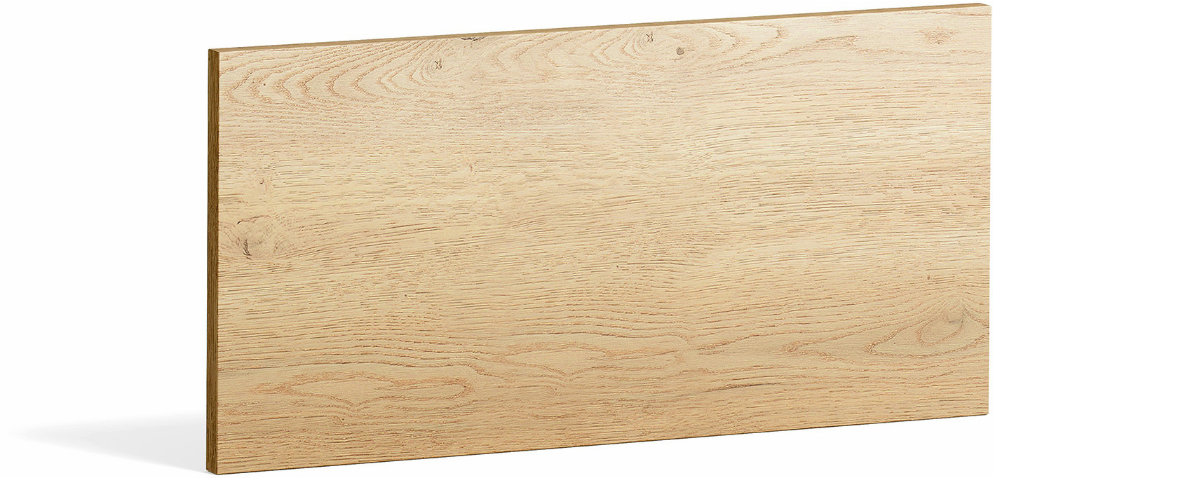 Panel je prikladan za sve ormare iz kolekcije Stor, bez obzira na njihovu visinu ili širinu. Boju možete odabrati među pet različitih opcija. Kod hrastove nijanse godovi drveta položeni su vodoravno, suprotno smjeru koji se koristi na ormaru u istoj boji.