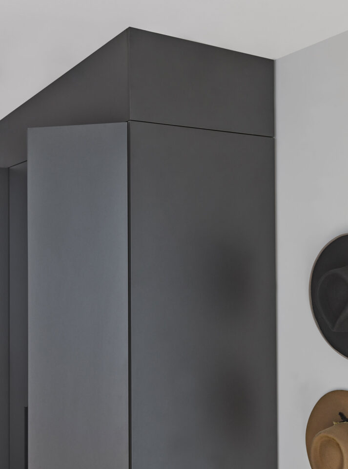 Bočni maskirni panel iz kolekcije Stor omogućuje precizno popunjavanje niše sa strane ormara koja nastaje tijekom montaže. Pomaže ukloniti razmake uz strop i omogućuje savršeno prilagođavanje namještaja prostoru. Njegovom upotrebom ormar dobiva izgled ugradbenog modela, a na gornjim površinama se ne skuplja prašina.