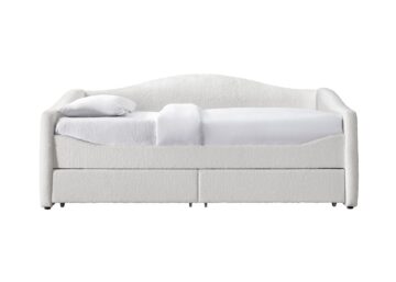 Krevet Caydence u krem bouclé tkanini kombinira eleganciju i praktičnost u modernoj dječjoj ili mladenačkoj sobi. Sa svojim dimenzijama od 99 x 216 x 94 cm i ugrađenim ladicama nudi dodatni prostor za pohranu i udobnost, upotpunjen mekom presvlakom u popularnoj boucle tkanini.