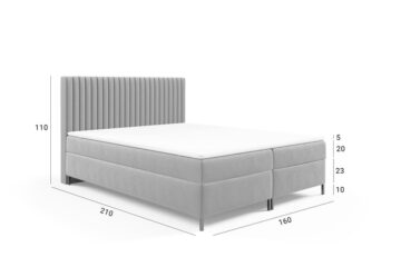 Boxspring krevet Leda je dizajniran s iznimno čvrstim okvirom koji osigurava dug vijek trajanja i udobnost. Pogodna je kako za hotele, tako i za kućne spavaće sobe, zahvaljujući vrhunskoj izradi koju cijene brojni kupci. Krevet dolazi s letvičastom podnicom od 50 letvica, smještenih u metalni okvir. Stranice kreveta obložene su pjenom i presvučene dekorativnom tkaninom po vašem izboru. Možete birati između više dimenzija: