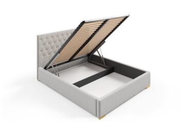 Boxspring krevet Mojca SB je dajnirana s iznimno čvrstim okvirom koji osigurava dug vijek trajanja i udobnost. Pogodna je kako za hotele, tako i za kućne spavaće sobe, zahvaljujući vrhunskoj izradi koju cijene brojni kupci. Krevet dolazi s letvičastom podnicom od 50 letvica, smještenih u metalni okvir koji se otvara uz pomoć amortizera i nudi ladicu za pohranu. Stranice kreveta obložene su pjenom i presvučene dekorativnom tkaninom po vašem izboru. Za dimenzije kreveta, molimo pogledajte tehnički crtež. Možete birati između više dimenzija: