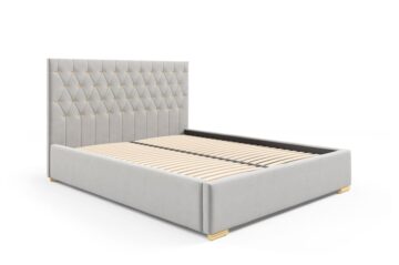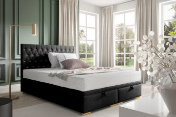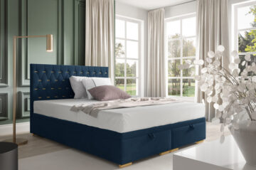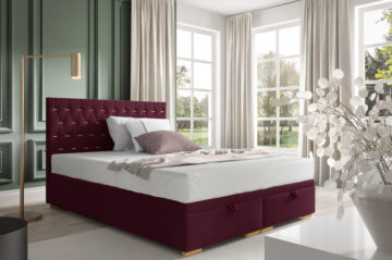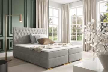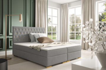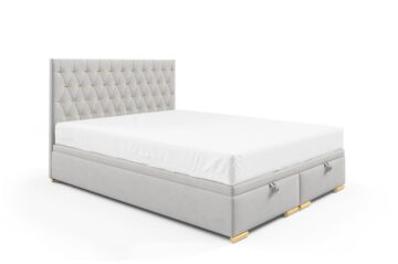 Boxspring krevet Mojca je dizajniran s iznimno čvrstim okvirom koji osigurava dug vijek trajanja i udobnost. Pogodna je kako za hotele, tako i za kućne spavaće sobe, zahvaljujući vrhunskoj izradi koju cijene brojni kupci. Krevet dolazi s letvičastom podnicom od 50 letvica, smještenih u metalni okvir. Stranice kreveta obložene su pjenom i presvučene dekorativnom tkaninom po vašem izboru. Za dimenzije kreveta, molimo pogledajte tehnički crtež. Možete birati između više dimenzija: