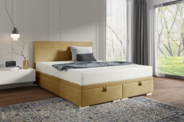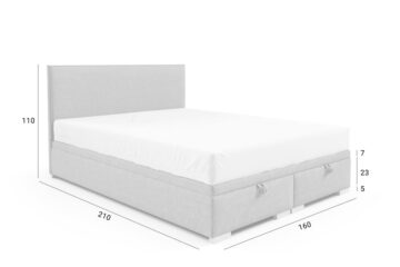 Boxspring krevet Vito 2 je dizajniran s iznimno čvrstim okvirom koji osigurava dug vijek trajanja i udobnost. Pogodna je kako za hotele, tako i za kućne spavaće sobe, zahvaljujući vrhunskoj izradi koju cijene brojni kupci. Boxspring krevet kevet uključuje visoko tapecirano uzglavlje, dvije praktične kutije za pohranu posteljine te drveni okvir koji se otvara uz pomoć plinskih amortizera, omogućujući jednostavan pristup prostoru za pohranu. Stranice kreveta obložene su pjenom i presvučene dekorativnom tkaninom po vašem izboru. Za dimenzije kreveta, molimo pogledajte tehnički crtež.