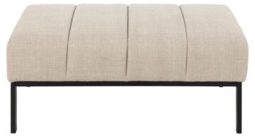 Klupa Caix donosi suvremeni dodir i funkcionalnost u vaš dnevni prostor. Njezina svestrana dizajn omogućuje korištenje kao oslonac za noge, dodatnu sjedeću površinu za goste ili dekorativni element. Presvučena je bež tkaninom s dvobojnim učinkom, koja zajedno s vertikalnim šavovima dodaje teksturu i eleganciju. Mat crne praškasto lakirane čelične noge ne samo da podržavaju klupu, već i dopunjuju njen suvremeni izgled.
