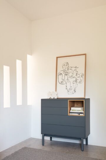 Teulat donosi suvremeni dizajn s naglaskom na kvaliteti i inovacijama. Kolekcija Corvo spaja jednostavnost, funkcionalnost i estetiku, savršeno usklađenu s vizijom brenda – stvoriti namještaj koji je pristupačan, elegantan i potpuno prilagodljiv različitim interijerima. Komoda Corvo idealan je izbor za svaki dom.