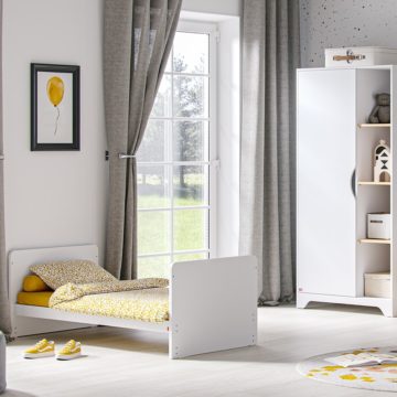 Namještaj je izrađen od oplemenjenog iverala. Dno krevetića se može podesiti u tri visine. Posteljina, tekstil i dodaci nisu uključeni u cijenu! Vrijeme isporuke: 3-45 dana.