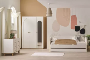 Dječja soba Lotus spaja estetski dizajn, prirodne tonove i praktična rješenja koja osiguravaju udobnost i optimalno korištenje prostora. Skandinavski stil s nježnim linijama i zaobljenim rubovima stvara ugodnu i toplu atmosferu, pogodnu za dječju ili mladenačku sobu.